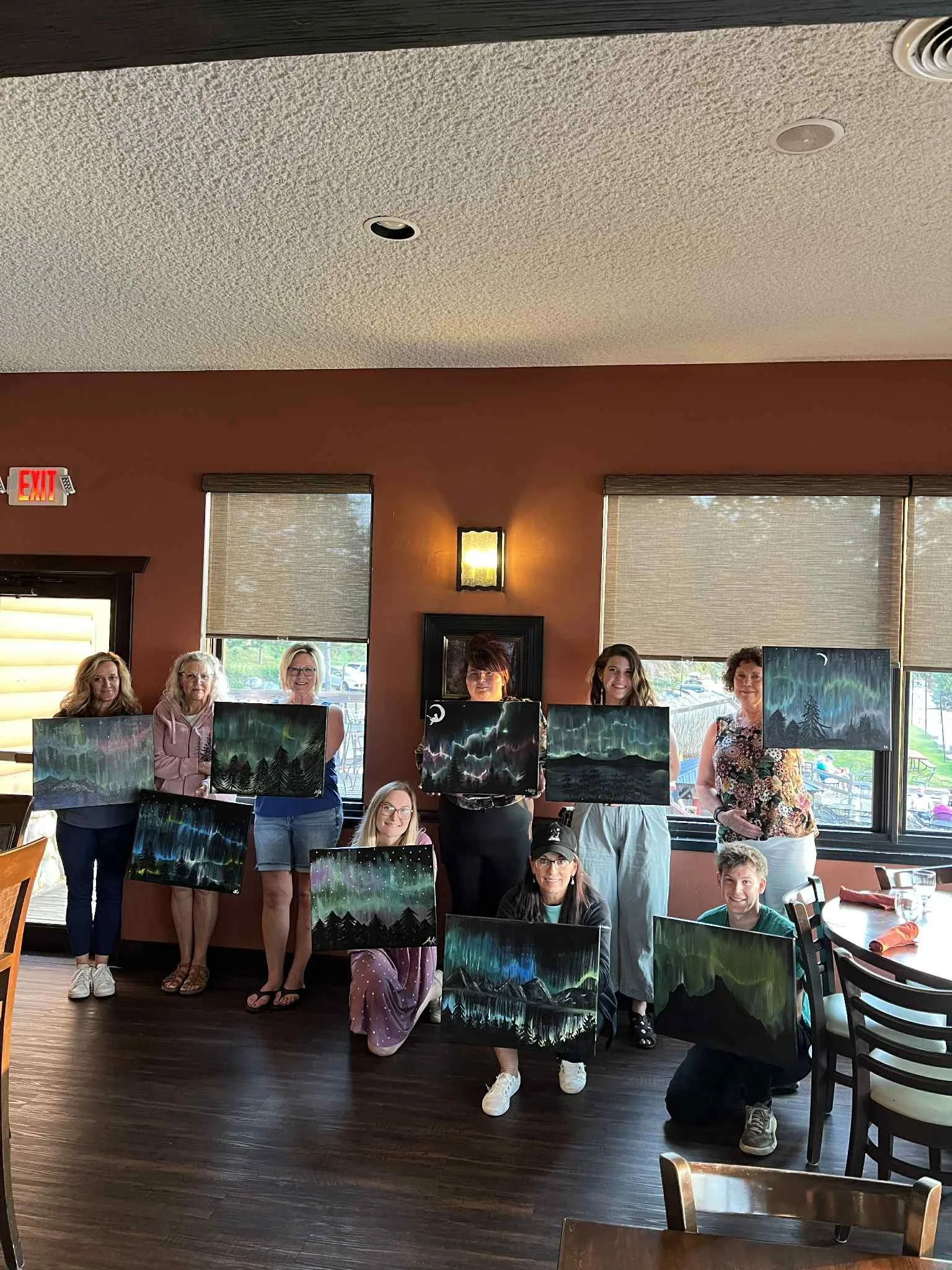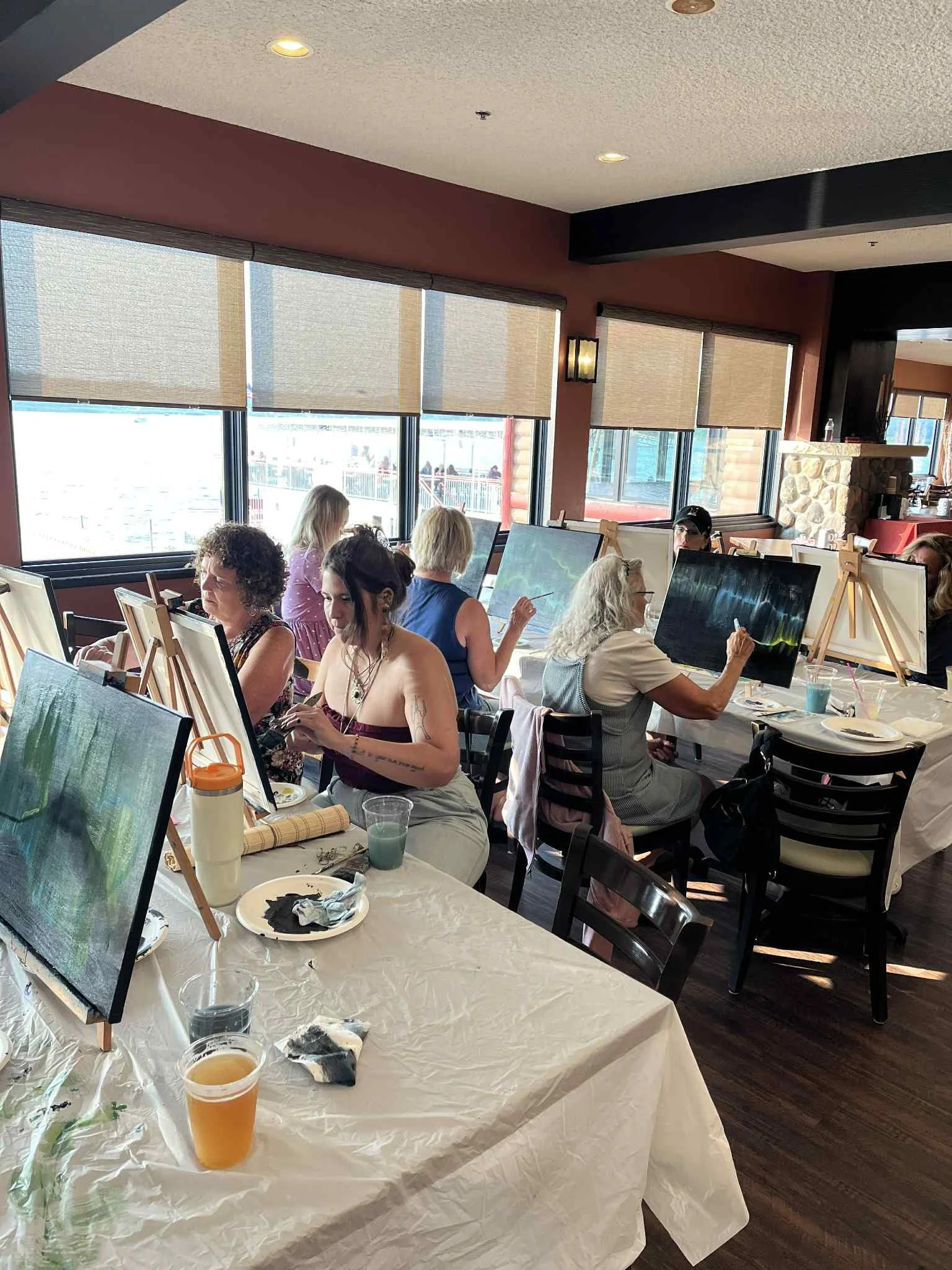 I bring the studio to you! I’ll travel to your location with all the supplies needed and guide you step-by-step through creating your very own masterpiece- from a blank canvas to a finished painting.